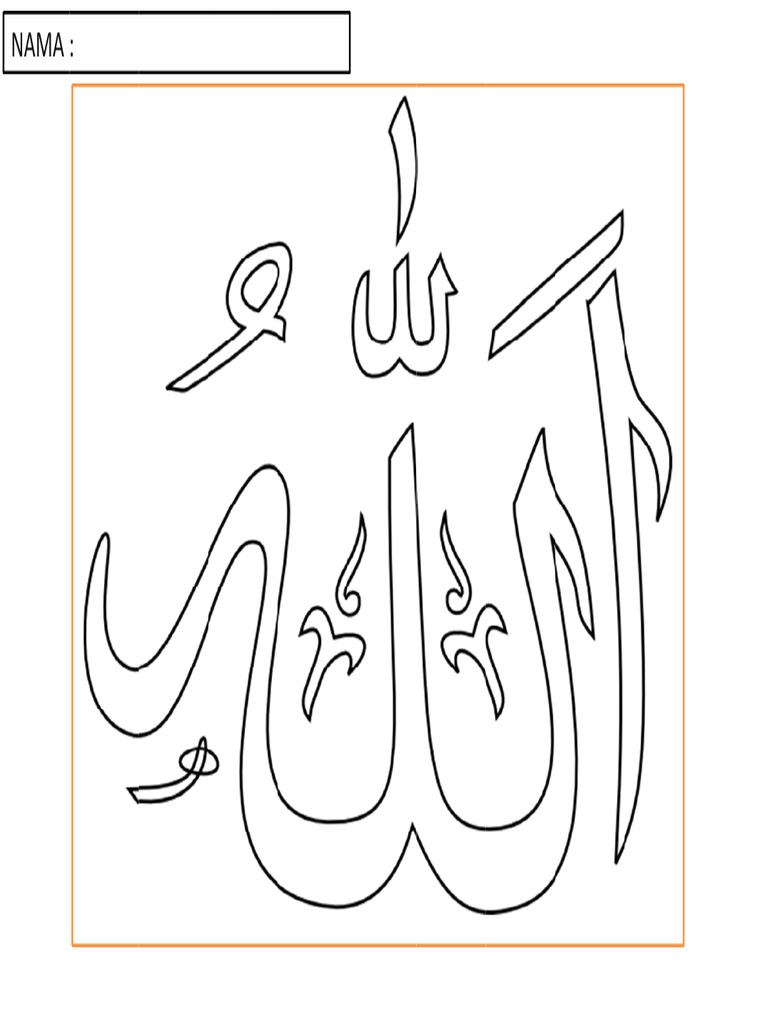 Sketsa gambar mewarnai kaligrafi allah terbaru gambarcoloring.